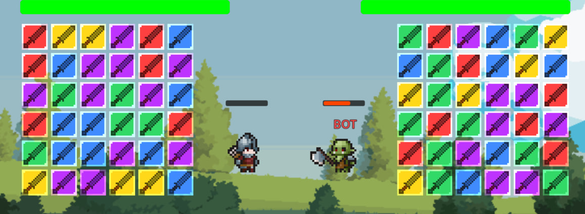 Match Battle fusiona la mecánica clásica de Match-3 con combates rítmicos. Enfréntate a la IA o a un amigo en duelos locales donde cada combinación de piezas se traduce en un ataque directo. ¿Tienes la estrategia necesaria para vencer?"